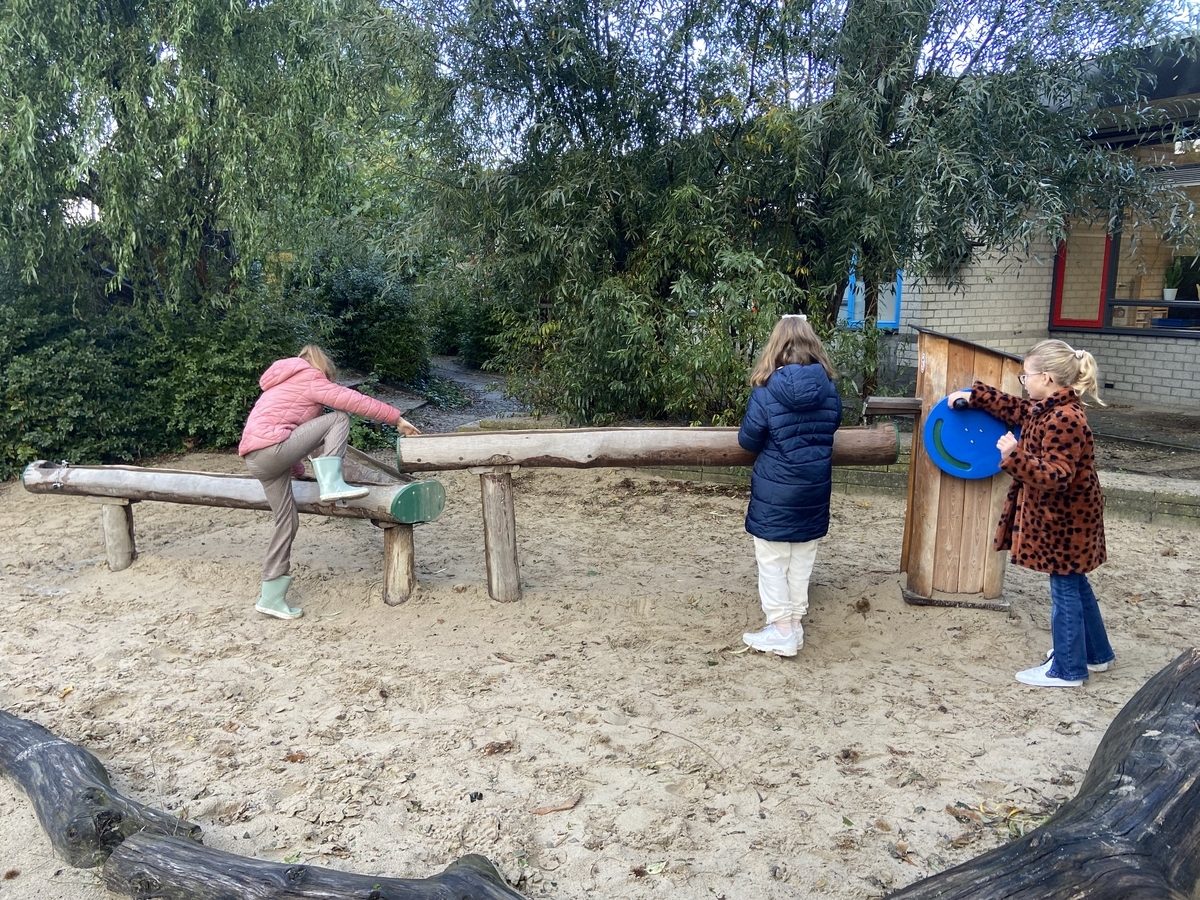 Ons groene schoolplein is voor kinderen een speel en ontdekplek. Verstoppen achter de struiken, rennen tussen de bomen en spelen of ontdekken met de waterpomp. Het kan allemaal op ons plein.